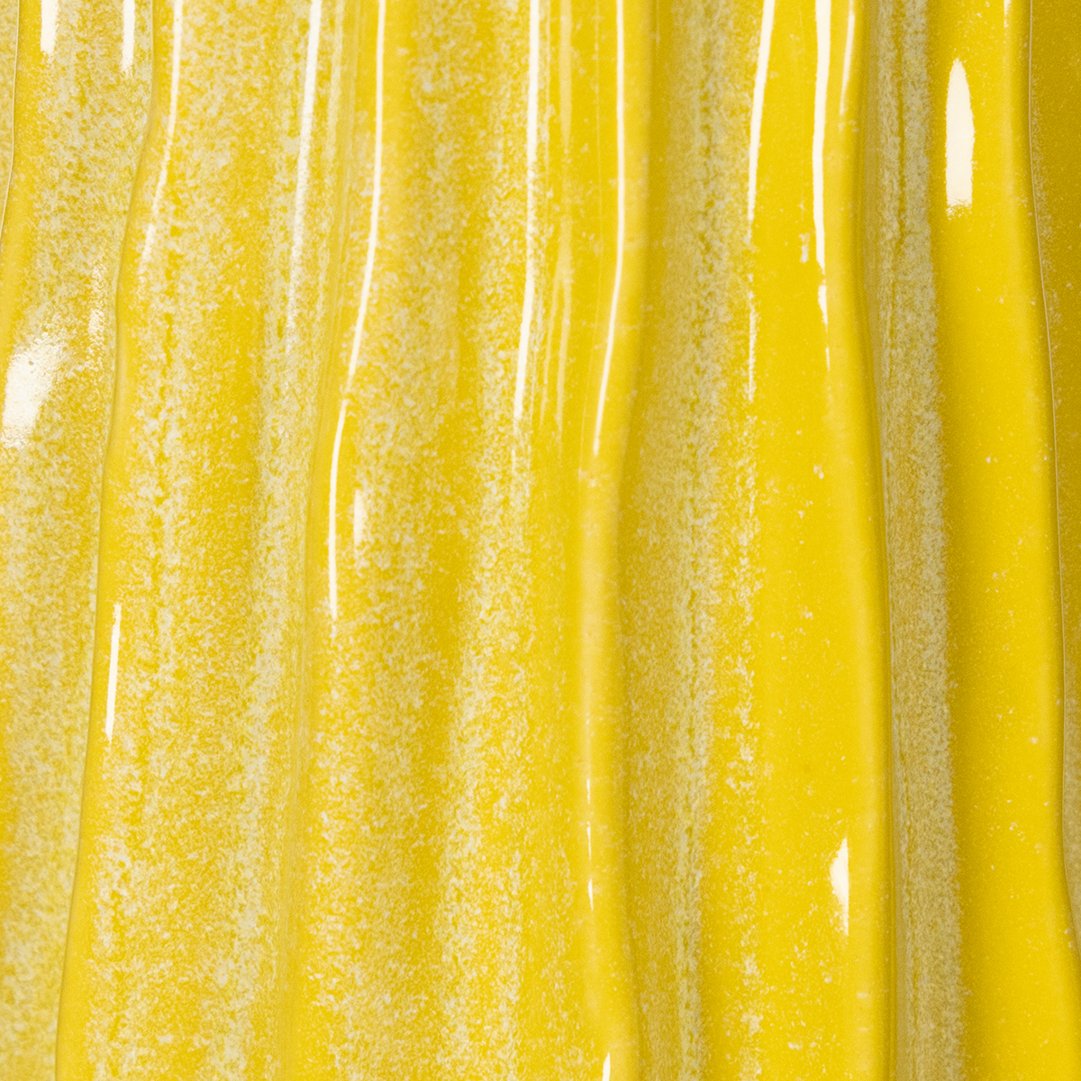 Denne gule, riflede vasen er et sant multitalent. Det moderne, riflede mønsteret er et blikkfang og tilbyr fleksible dekorasjonsmuligheter. Den varme fargen bringer solskinn inn i hjemmet ditt og utstråler ren livsglede. Som et frittstående møbel er den et stilig høydepunkt som visuelt forbedrer innredningen din uten å være påtrengende.