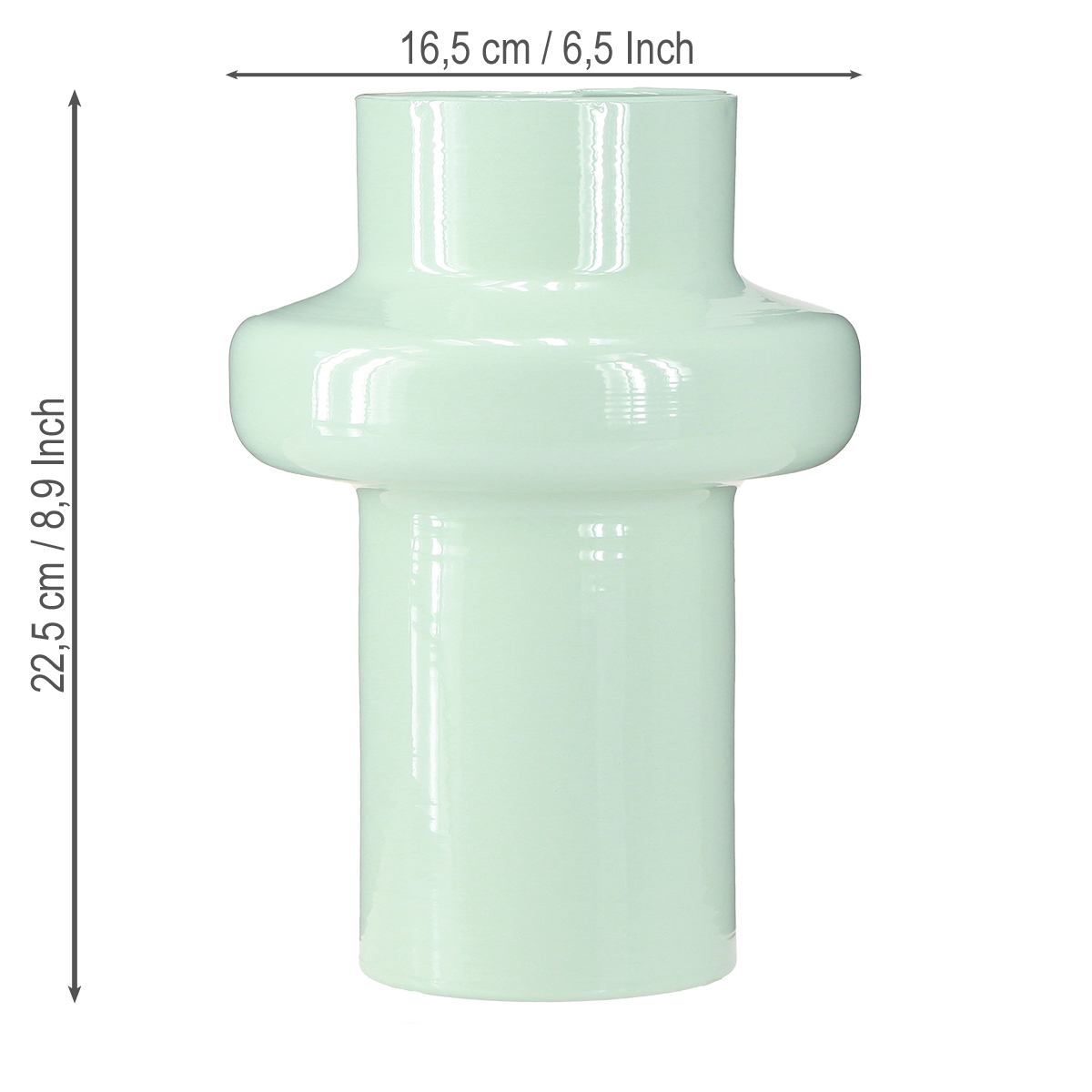 I fargesymbolikk står mintgrønt for friskhet og ro. Det gir en beroligende effekt til oppholdsrom, samtidig som det formidler en følelse av fornyelse og vekst. Fantastisk, fordi denne vasen er ideell for vårdekorasjon. Denne dekorative vasen er også tilgjengelig i andre lyse vårfarger og andre former i butikken vår. Du kan også lage dekorasjoner med flere blomstervaser.