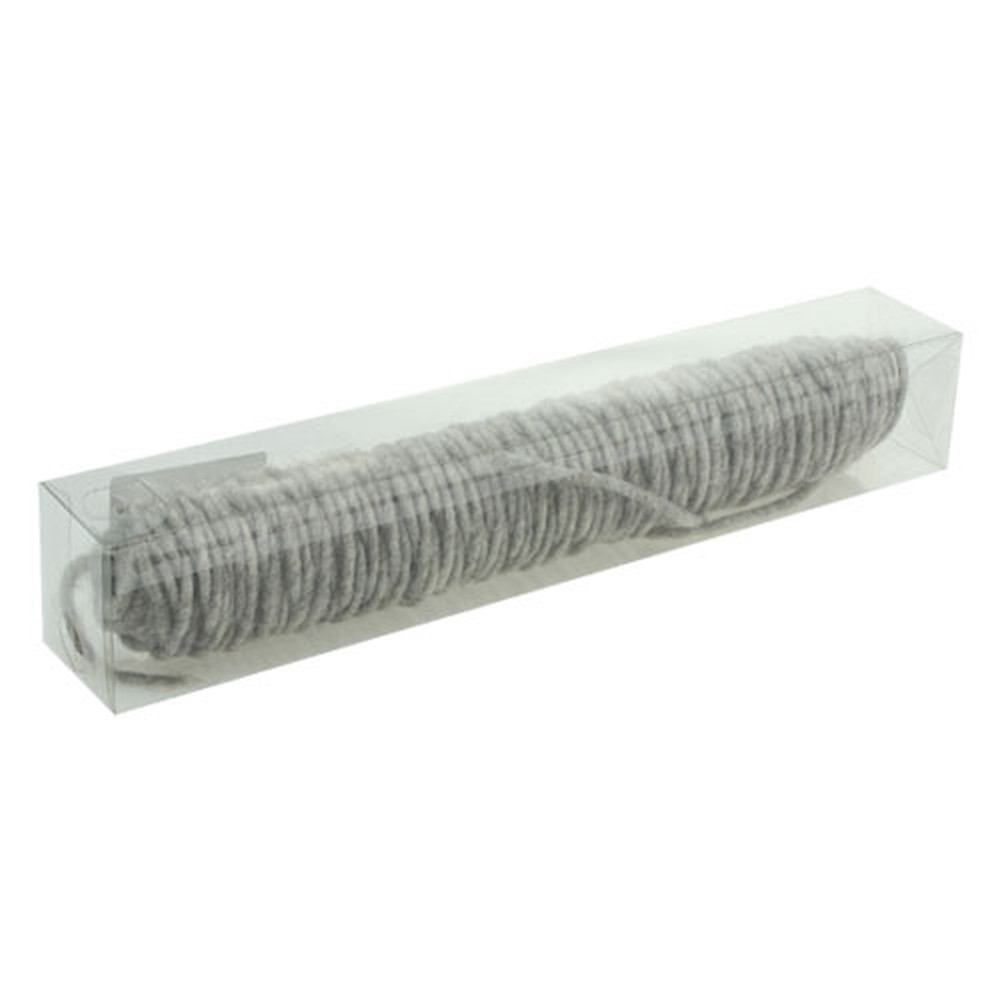 Den grå veketråden leveres i en liten boks og er omtrent 55 meter lang. Tråden består av rundt 20% jute og rundt 80% ekte saueull.