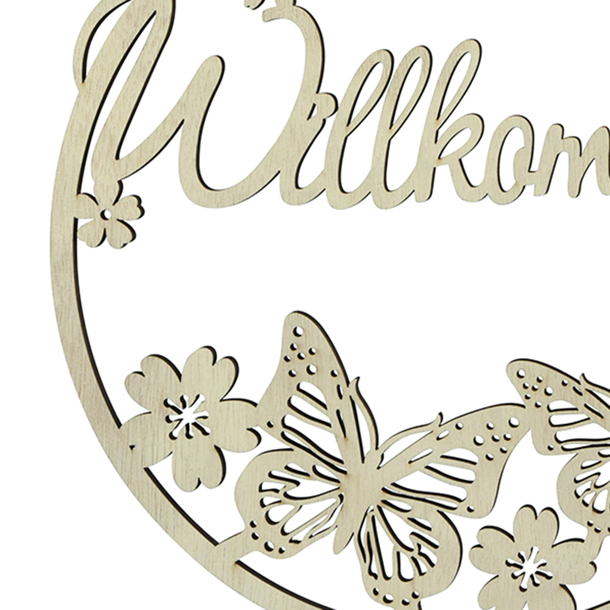 Velkomstskilt, dekorativ trering med sommerfugl, Ø21,5 cm, 4 deler - dørkransdekorasjon, vår, naturlig farge