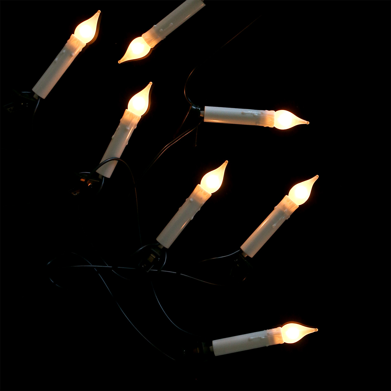 Denne juletrebelysningen er spesielt egnet for større trær innendørs, i stuer så vel som i forretningslokaler eller foajeer. Hver lampe skjønner villedende utseendet til et ekte vokslys hvor en liten flamme brenner. Mens det realistisk utformede lyset har små voksdråper, har den matte glødende pæren form av en liten flamme som svir forsiktig i vinden. Med et klipp i grønt kan du på en pålitelig måte feste julelysene til grangranene på juletreet ditt.