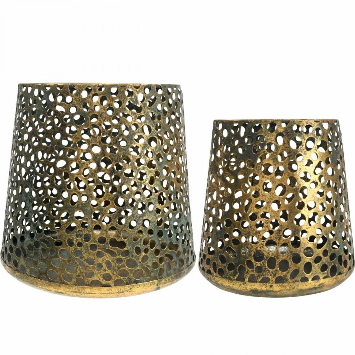 Vindlys lanterne gylden Ø14/20,5cm H14,5/19,5cm sett med 2 stk.