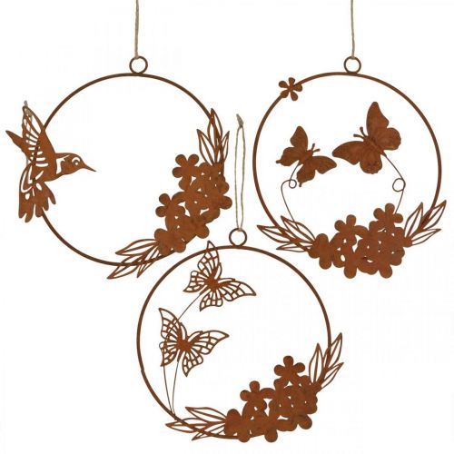 Vindusdekor fjær, hengende dekor vegg metall rust look 18/18,5cm 3stk