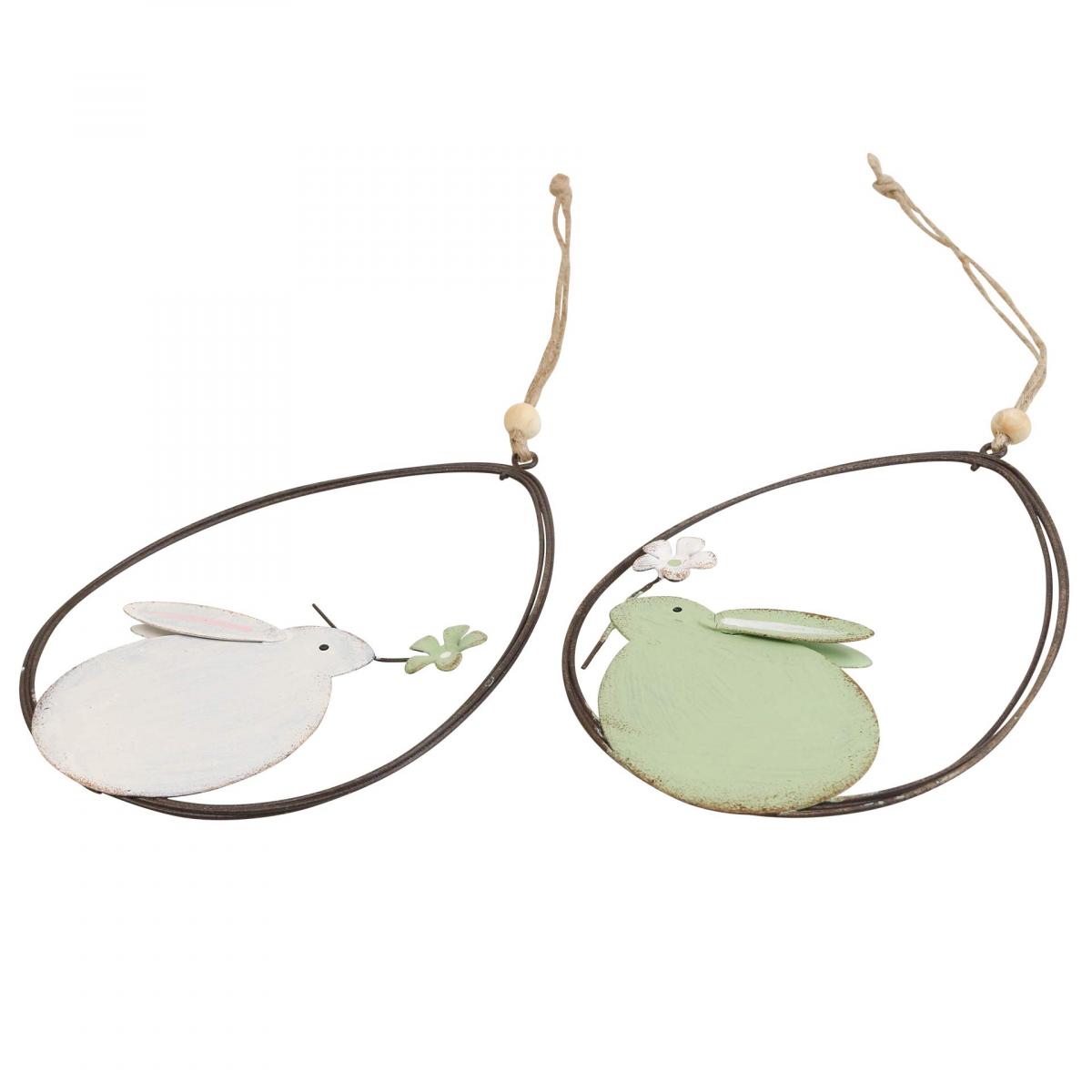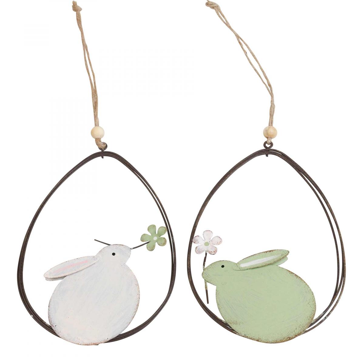 Vindusdekor, påskehare metall, hengende dekorasjon påske 15cm 4stk grønn hvit