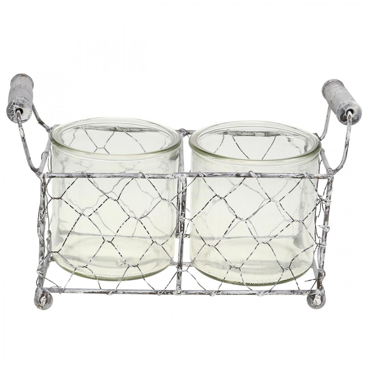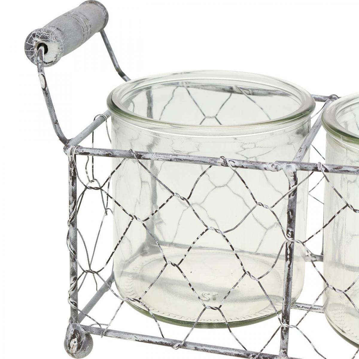 Produktnavn: Vintage trådkurv hvitnet med glassvaselykt 21×10,5cm