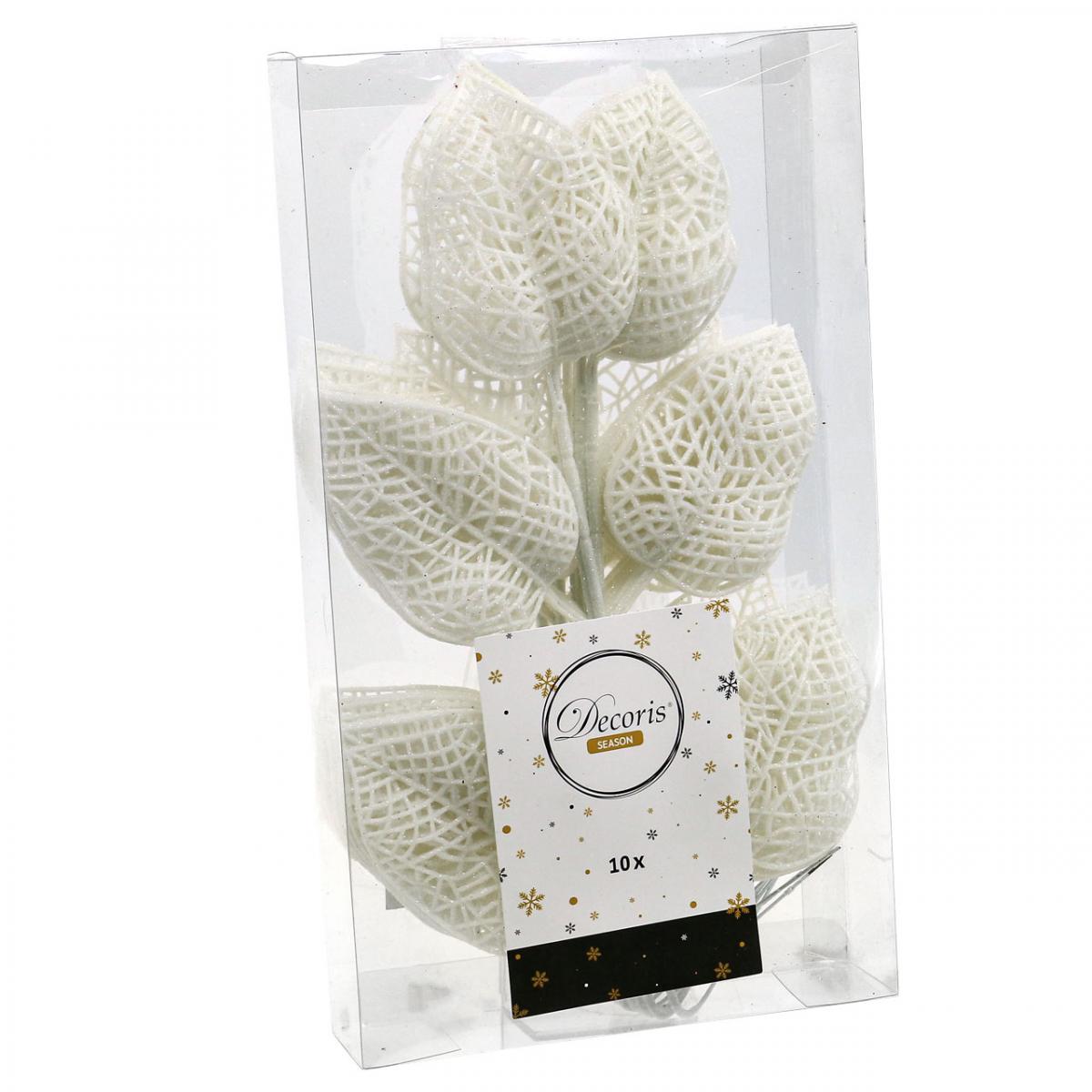 Vinterpynt, deco blader, kunstig gren hvit glitter L36cm 10p