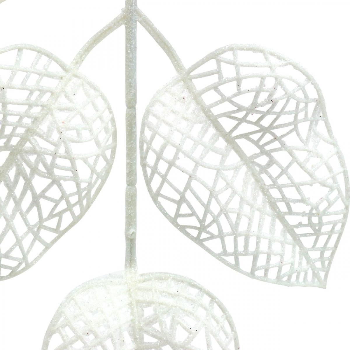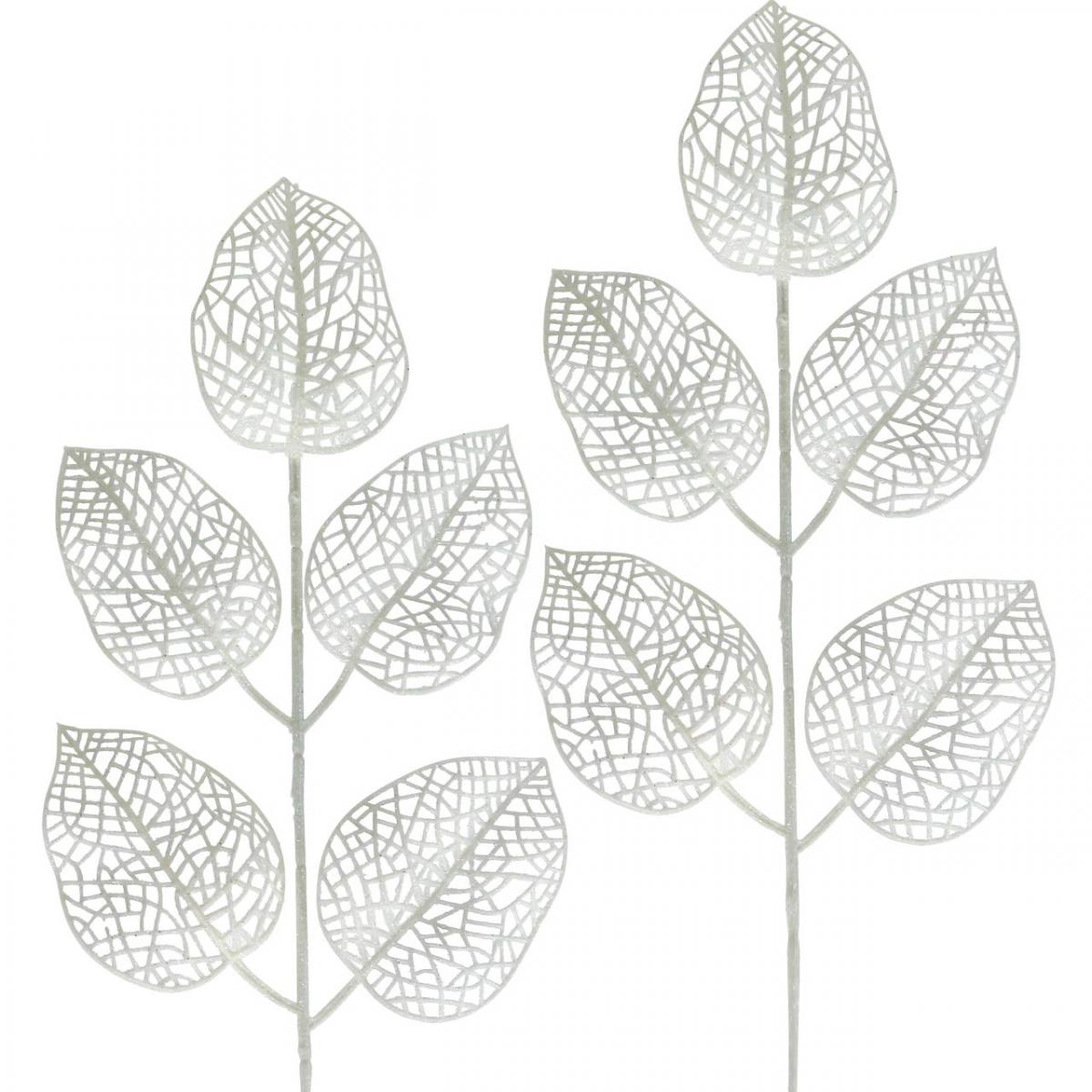 Produktnavn: Vinterpynt, deco blader, kunstig gren hvit glitter L36cm 10p