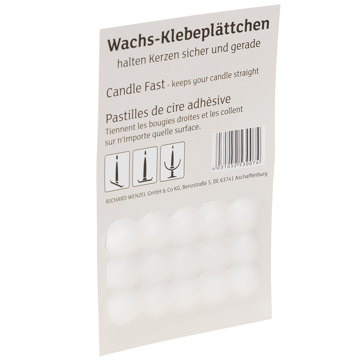 En blanding av voks og klebevoks sørger for at voksklebeplatene gir et spesielt sikkert hold. De små, runde platene er derfor en ekstremt praktisk hjelper når du skal lage fantasifulle lysdekorasjoner.