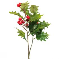 Kunstig gren lang snøhvit gren med røde bær 130 cm